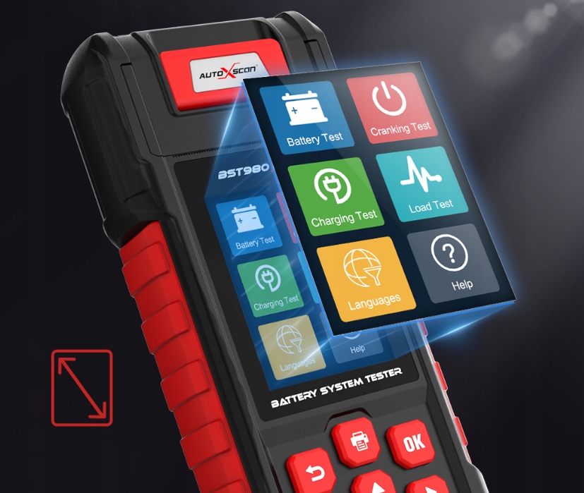Тестер батареї Autoxscan BST980PRO використовує найдосконалішу у світі технологію тестування провідності, він розроблений із вбудованим принтером.