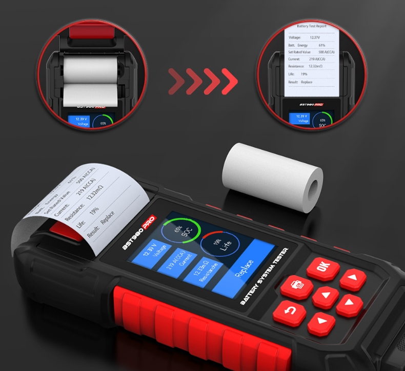 Тестер батареї Autoxscan BST980PRO використовує найдосконалішу у світі технологію тестування провідності, він розроблений із вбудованим принтером.