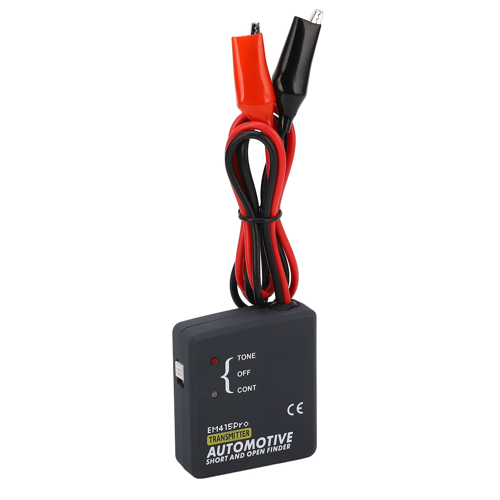 - Легко використання: просто з’єднайте передавач послідовно з ланцюгом або проводом, що перевіряється (тобто замість перегорілого запобіжника, через роз’єм, послідовно з відкритим дротом, патроном лампочки тощо) і скануйте ланцюг/провід за допомогою гнучкого мітка зонд, щоб знайти місце проблеми