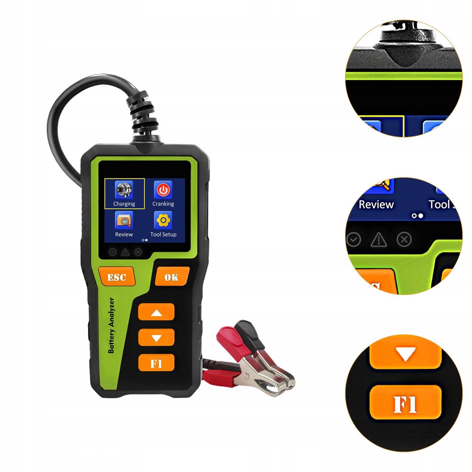 [Широка підтримка]: пристрій працює від 5-30 В, підходить для автомобілів , мотоцикли та вантажівки тощо. Перевірка запуску підтримує 12 В і 24 В, перевірка заряджання підтримує 12 В і 24 В
