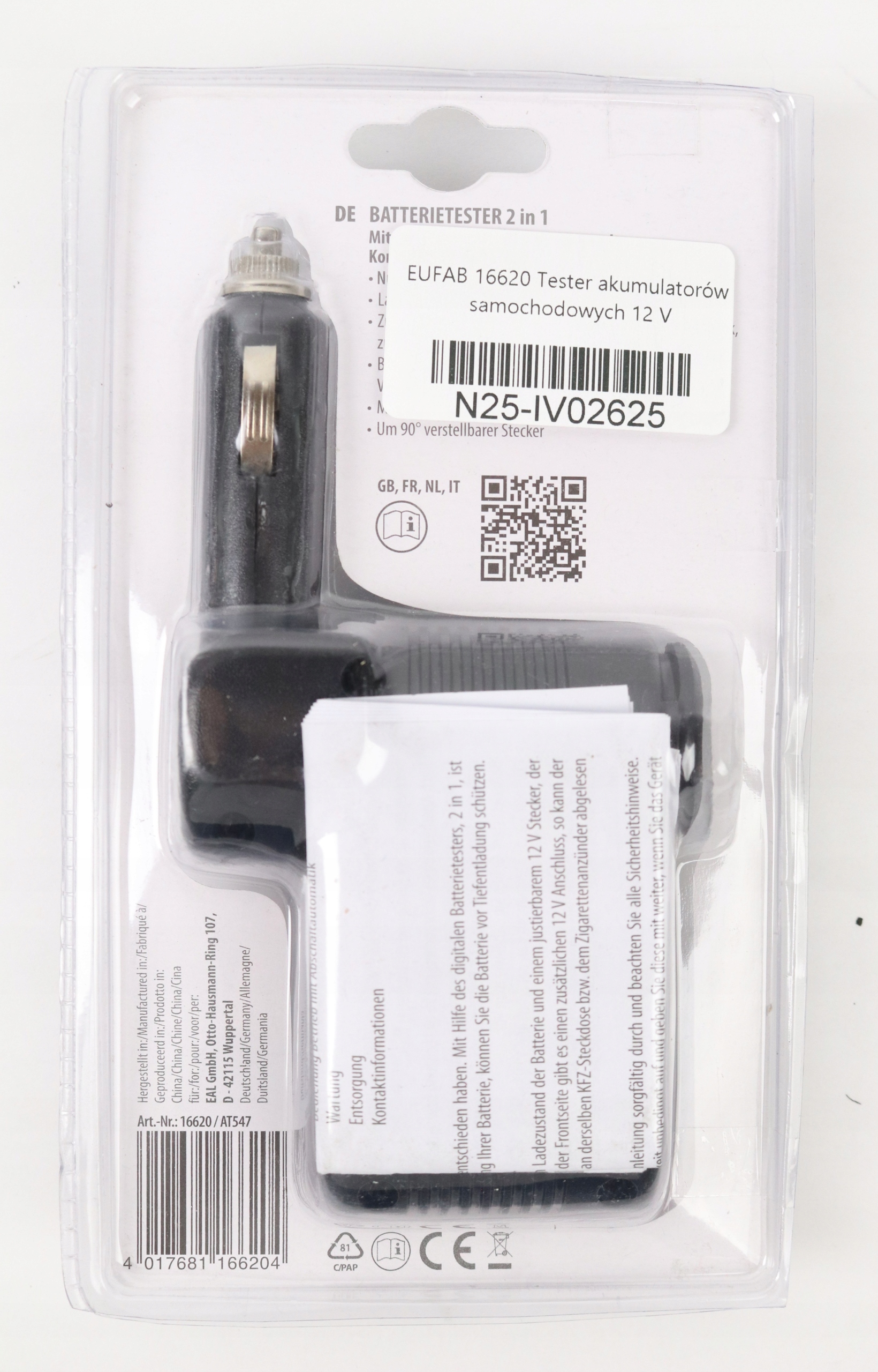 Просматривая «Тестер автомобильного аккумулятора EUFAB 16620 12 В», вы можете быть уверены, что данный товар из каталога «Тестеры батареи» будет доставлен из Польши и проверен на целостность. В цене товара, указанной на сайте, учтена доставка из Польши. Внимание!!! Товары для Евросоюза, согласно законодательству стран Евросоюза, могут отличаться упаковкой или наполнением.