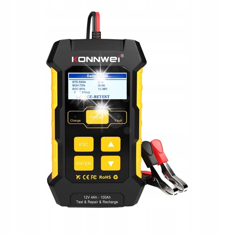 Konnwei KW510 -це вдосконалений багатофункціональний пристрій, який використовує новітню технологію, щоб ви могли легко, швидко, швидко і точно виміряти реальну ємність холодного запуску, стан акумулятора та загальні дефекти початкової системи та зарядної системи транспортного засобу. KW520 особливо корисний у машинних майстернях, оскільки він може ретельно вказати на проблему, що дозволяє швидко ремонтувати транспортний засіб.