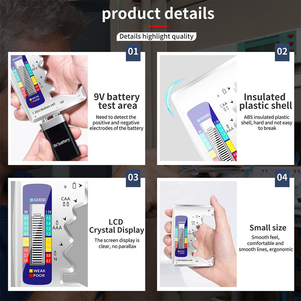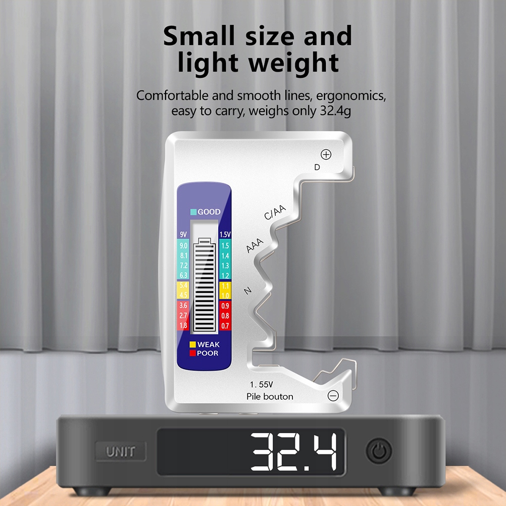 Креативний ергономічний дизайн, підходить для тестування більшості батарей, таких як тип D, тип C, AA, батарея 9 В тощо.