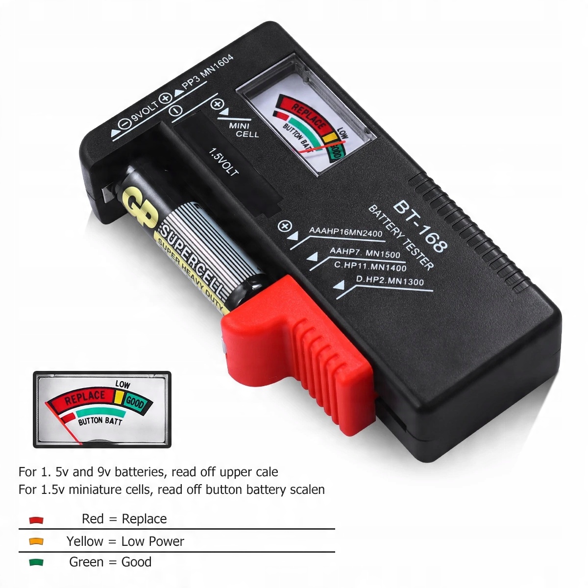 ✅Перевіряє рівень живлення всіх акумуляторів 1,5 В і 9 В.