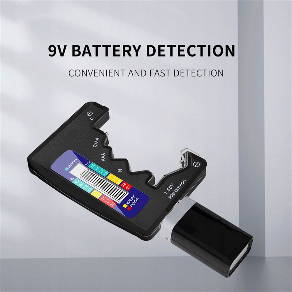 ✅Цей товар є універсальним тестером батарейок AA, AAA, C, D, N, 9V і LR44. З його допомогою ви можете легко отримати електричну кількість батареї, яку ви перевіряєте, і знати, які батареї залишити, а які викинути, помістіть батарею між двома точками тестера батареї, і дисплей індикатора покаже, чи потрібно батареї буде замінено.