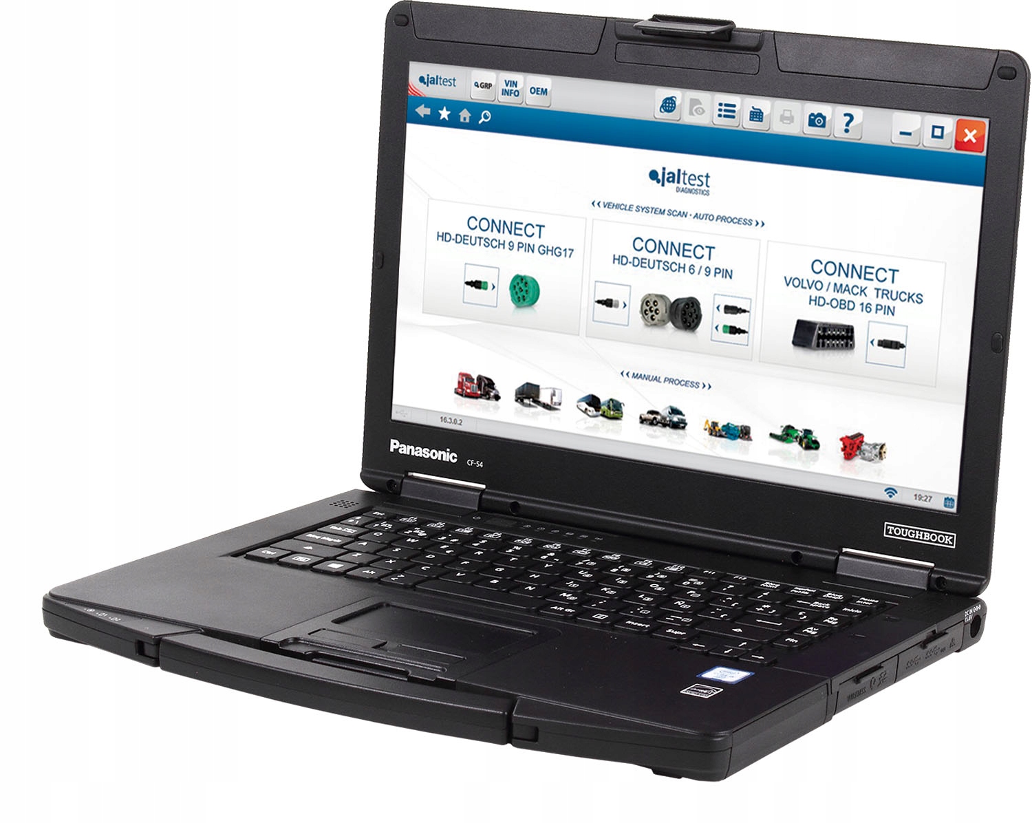 JALTEST Rugged — це компактний, легкий ноутбук для використання в майстерні, оснащений стандартами MIL-STD-810G (стійкий до ударів) і IP5X (захист від пилу, захист від струменів води під тиском).