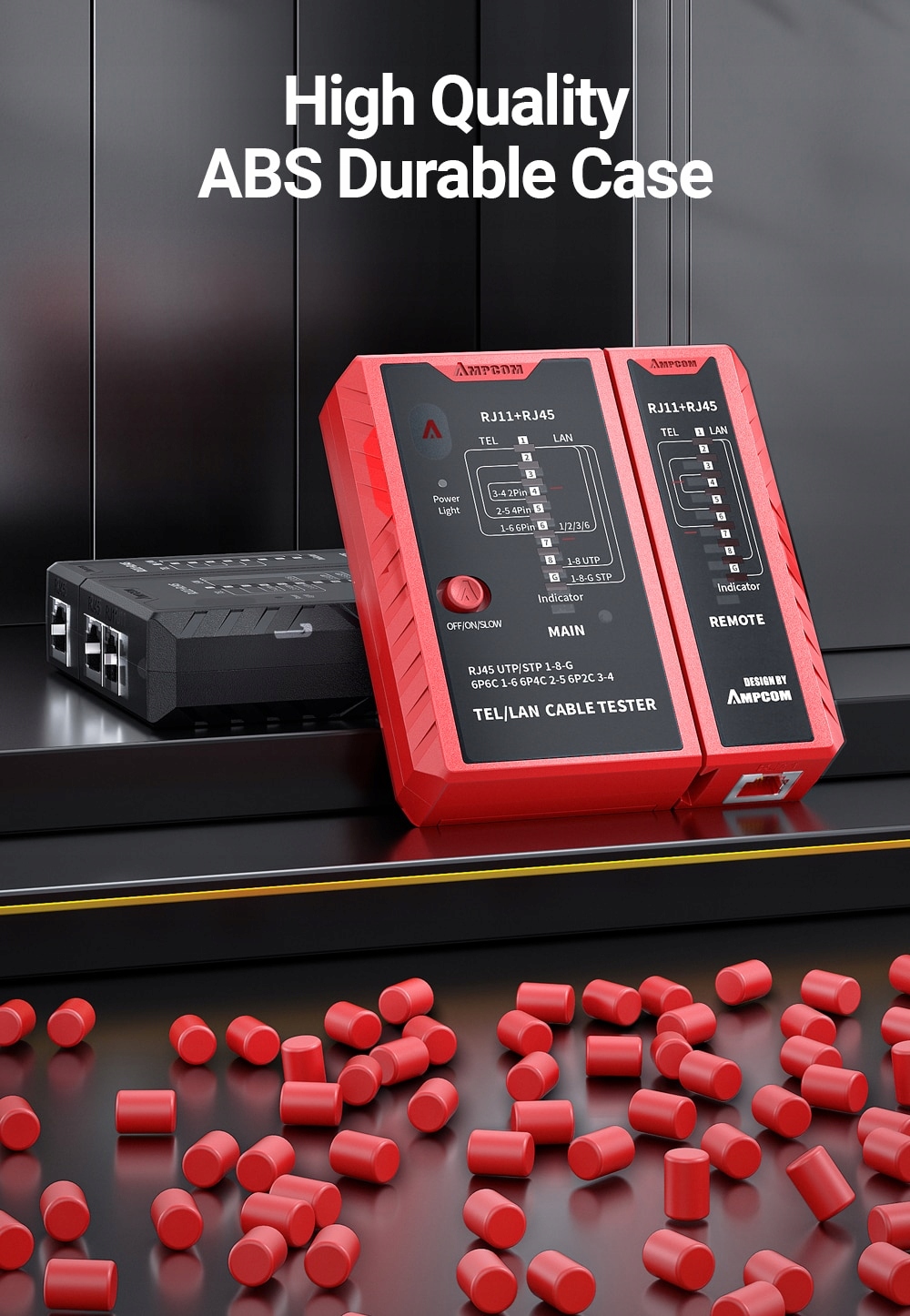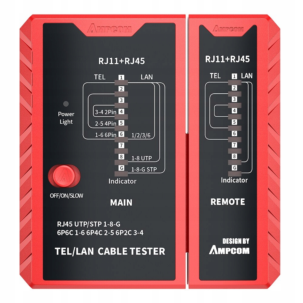 ТЕСТЕР ДІОДІВ ДЛЯ МЕРЕЖЕВИХ RJ45 ТА ТЕЛЕФОННИХ КАБЕЛІВ RJ11 UTP/STP AMPCOM