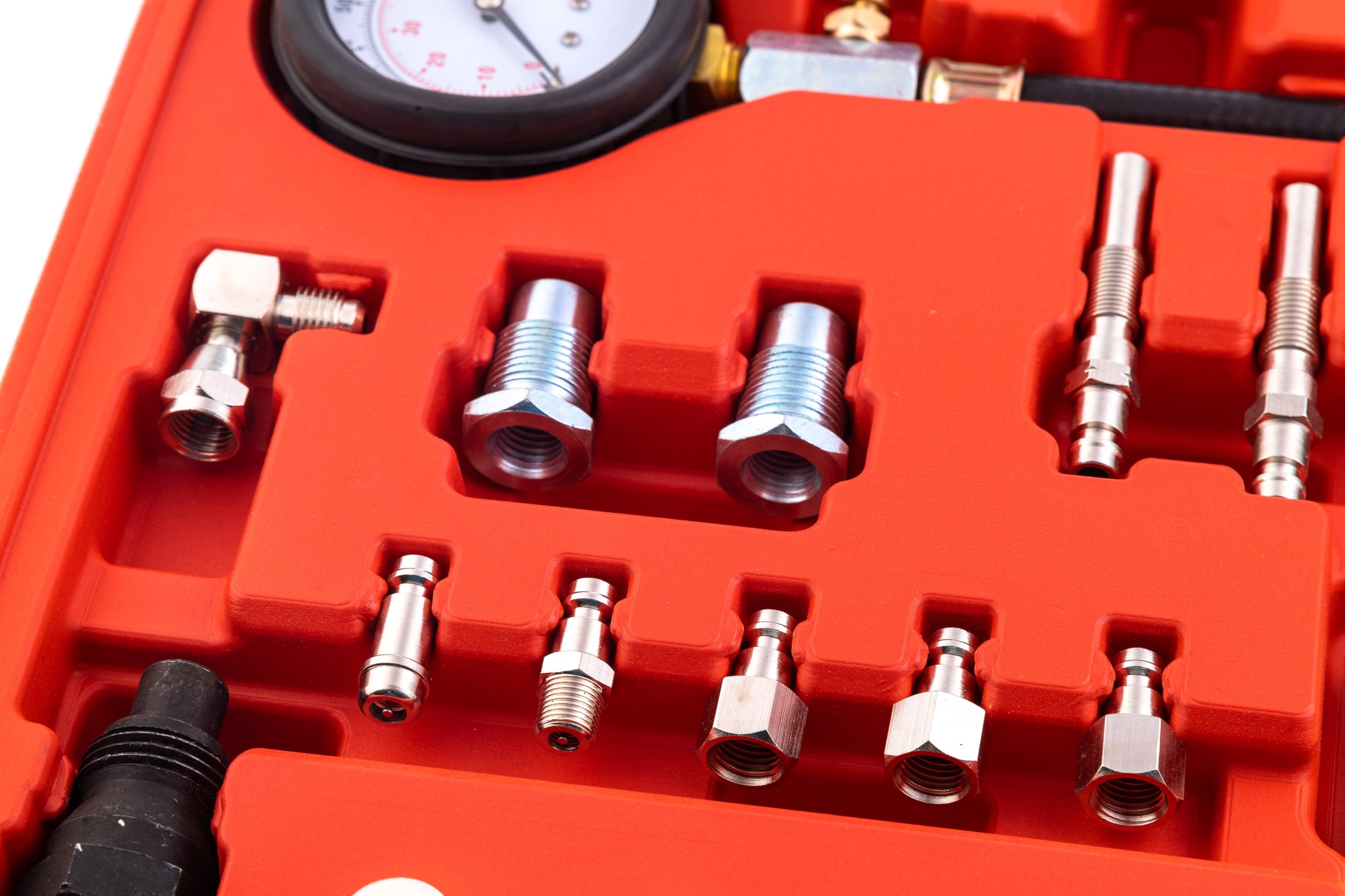 Професійний набір для вимірювання тиску компресії в циліндрах дизельних двигунів. Вимірювання можна проводити як через свічки розжарювання, так і через інжектор.