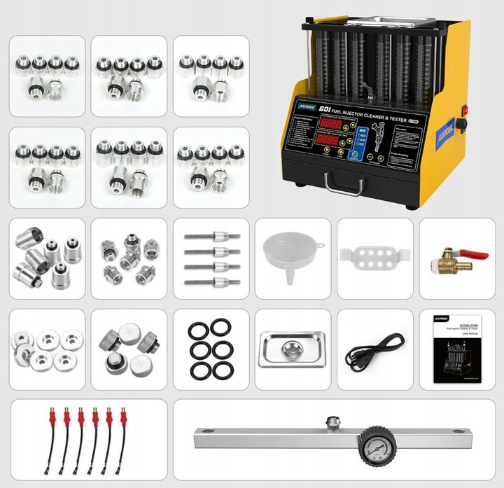 Асортимент засобів для очищення автомобільних форсунок AUTOOL включає випробування форсунок під низьким тиском, а також під високим тиском, які широко використовуються в форсунках GDI, EFI, FSI та інших типах для автомобілів, мотоциклів і яхт.