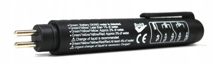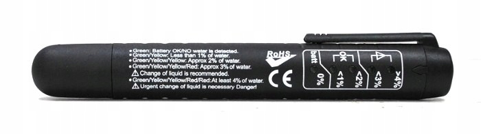 Електронний тестер гальмівної рідини для використання в професійних автосервісах. Якість рідини визначається 5 світлодіодами (відсоток води в рідині)