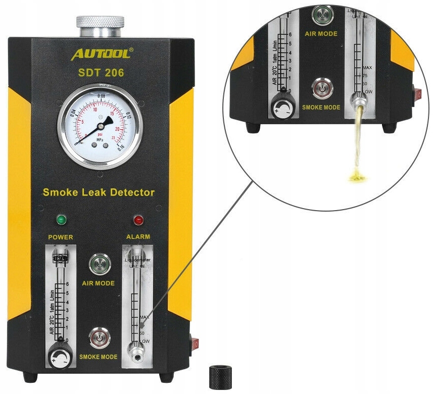 1. Важливий інструмент для автомобільних техніків. AUTOOL SDT 206 має власний повітряний насос, не покладаючись на інші машини. Спостерігаючи за манометром, витоки можна побачити з першого погляду.