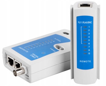 - Тестер, оснащений діодами, RJ-45, RJ-12/RJ-11, коаксіальними роз’ємами. і комутатор .