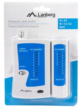 Тестер мережевого кабелю Lanberg — це багатофункціональний пристрій для тестування кабелів у телекомунікаційних мережах. Пристрій є незамінним інструментом для кожного монтажника. Це допомагає істотно заощадити час на перевірку пар мережевих кабелів. Пристрій в основному використовується для вимірювання безперервності кабелів локальної мережі та перевірки з’єднань, включаючи виявлення можливих проблем із короткими замиканнями або неправильними парними з’єднаннями. За допомогою цього інструменту ви можете перевірити з’єднання телефонних кабелів із роз’ємом RJ-11, витих пар UTP, FTP, SFTP із роз’ємом RJ-45 і кабелів із коаксіальним роз’ємом. Пристрій складається з двох частин, які необхідно прикріпити до кінців тестованого кабелю: