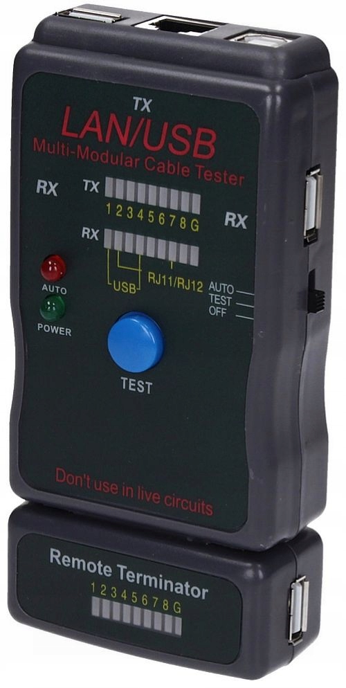 ТЕСТЕР КАБЕЛЮ RJ-45 RJ-11 UTP STP USB A-A, USB A-B