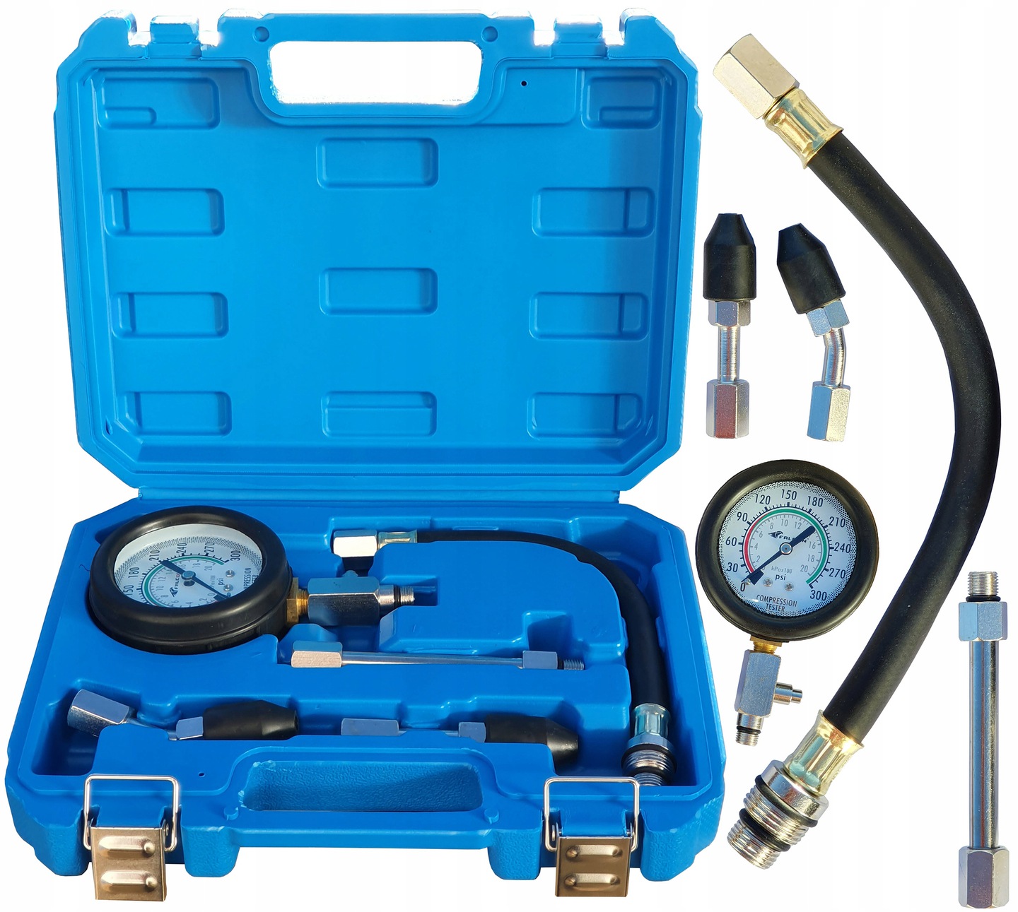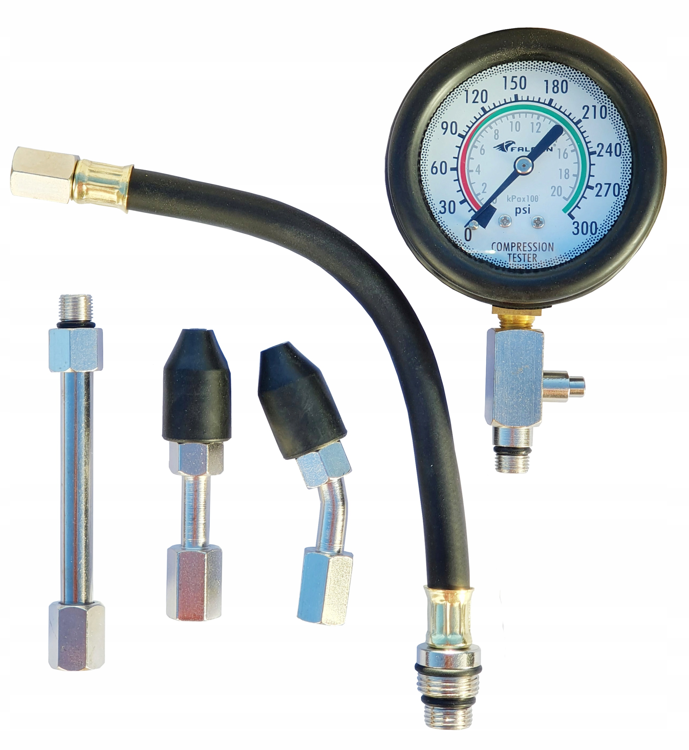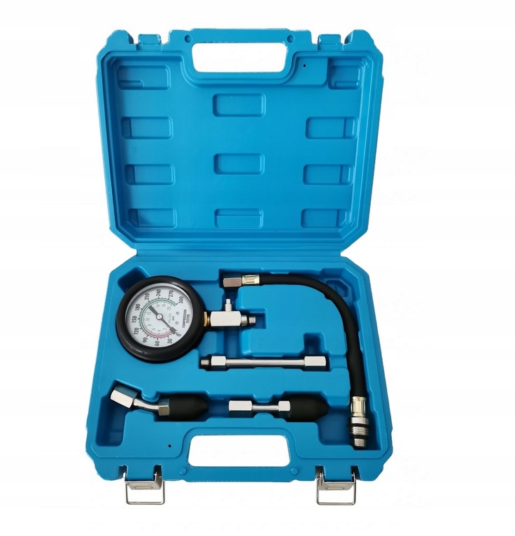 Набір з п'яти частин призначений для вимірювання тиску компресії в двигунах з іскровим запалюванням. Рекомендовано для обслуговування автомобілів і механіки.