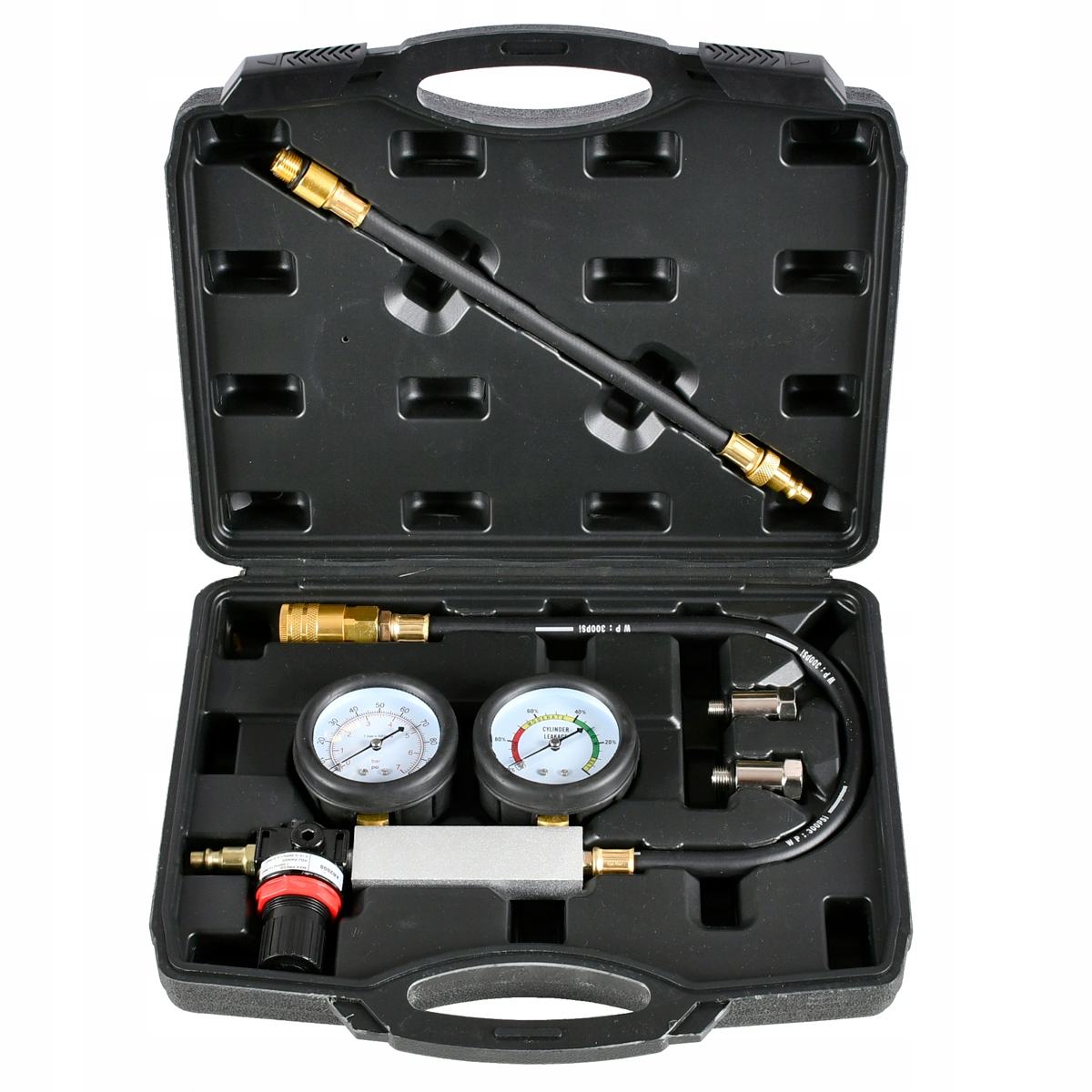 Дозволяє перевірити ступінь зносу двигуна, подаючи стиснене повітря в циліндр і визначення відсотка падіння тиску, спричиненого витоками циліндрів.