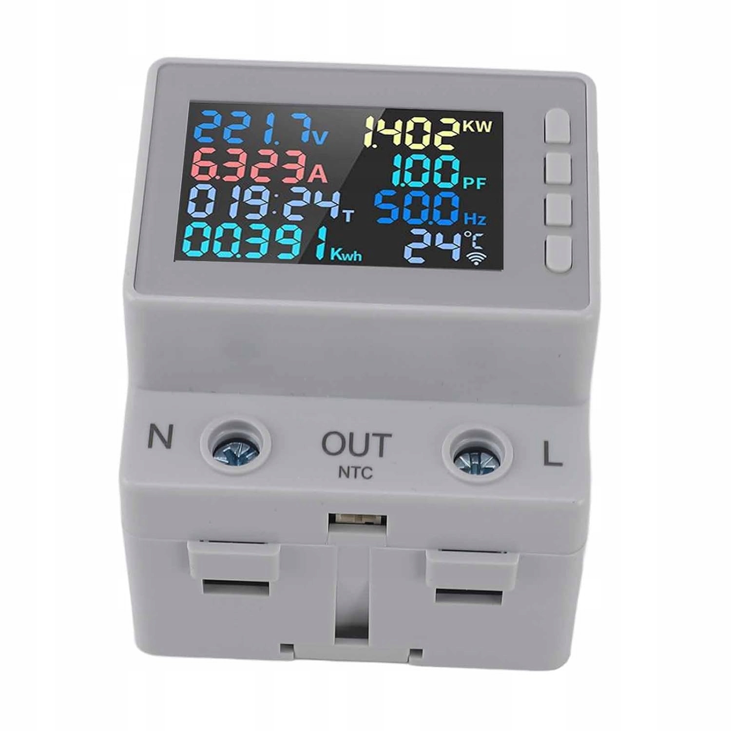 Зручне використання Цей вимірювач напруги має компактну конструкцію, забезпечує швидке встановлення, а кнопка проста та надійна. Він має широкий спектр застосування. Цифровий дисплей У цьому лічильнику енергії використовується цифровий екран для відображення значень напруги та струму, що зручно для користувачів, щоб контролювати стан схеми та дані в реальному часі. Захист ланцюга. Цей лічильник електроенергії має функцію захисту від перегріву та відключення електроенергії, забезпечуючи безпечну роботу ланцюга. Його можна використовувати без побоювань. Різноманітність застосувань Цей тестер електрики можна використовувати для вимірювання напруги, струму, електрики, температури, частоти та потужності, що є ефективним і практичним. Сфера застосування Цей лічильник енергії на DIN-рейку підходить для ланцюга змінного струму з напругою 170270 В і струмом 063 А, задовольняючи різноманітні потреби в електричних вимірюваннях.