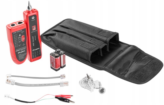 Тестер (передавач і приймач) містить такі аксесуари, як телефонний кабель RJ-11, кабель Ethernet RJ-45, кабель із затискачами типу «крокодил», навушники, акумулятор.