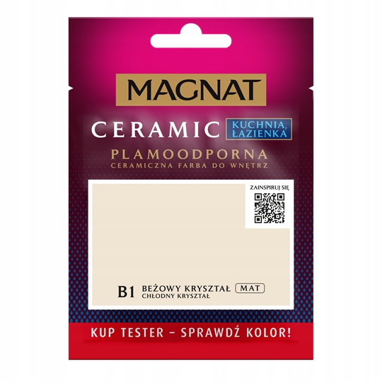 MAGNAT CERAMIC Kitchen, Bathroom — керамічна фарба, яка створює покриття з гідрофобними властивостями, особливо рекомендована для декоративного та захисного фарбування стін і стель всередині приміщень, які піддаються періодично зростаючій вологості та конденсації води. пари, як-от ванні кімнати, пральні та кухні.