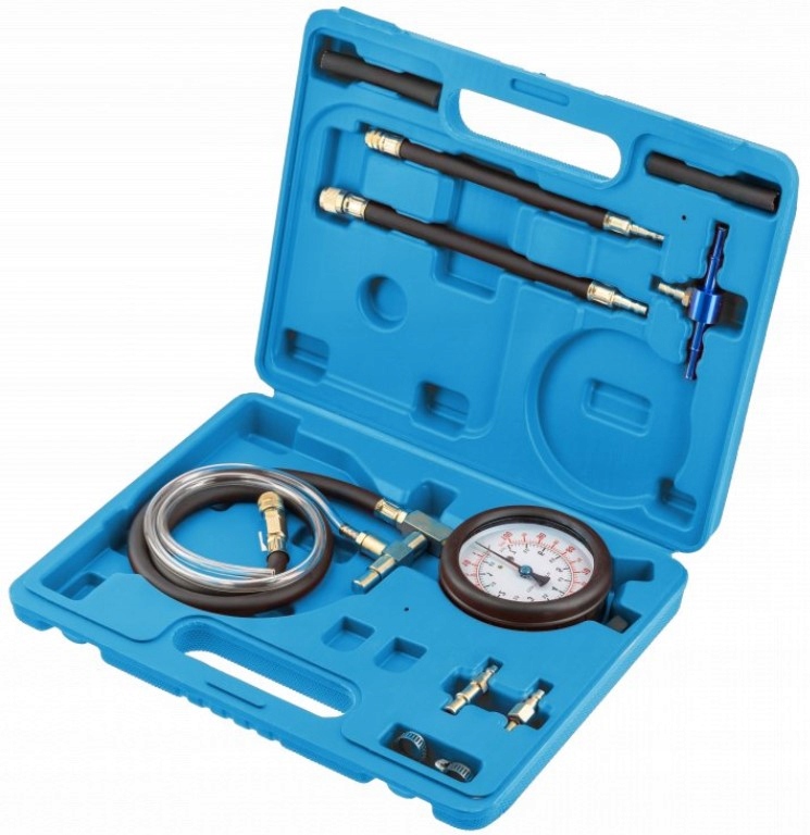 Манометр дозволяє проводити точні вимірювання упорскування палива в циліндрах бензинових і дизельних двигунів. Чітка подвійна шкала манометра полегшує читання результату вимірювання.