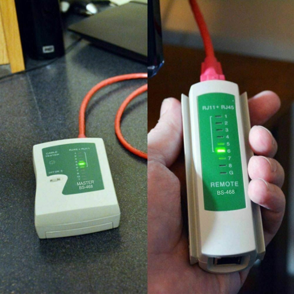 Тестер для мережевих кабелів із штекерами RJ45 та телефонних кабелів із штекерами RJ11.