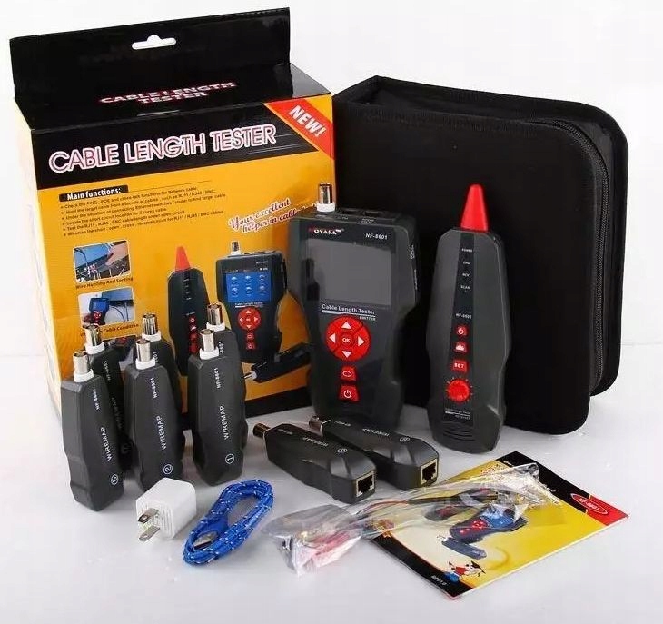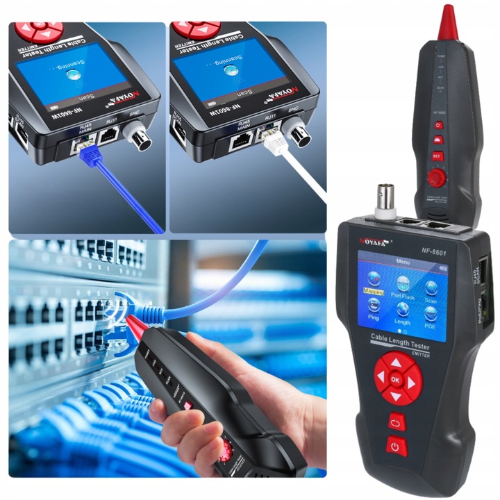 NOYAFA NF-8601W — це професійний тестер, призначений для діагностики кабелів RJ45, RJ11 і BNC. Пристрій дозволяє детально перевіряти різні типи кабельних інсталяцій і аналізувати параметри мережі.