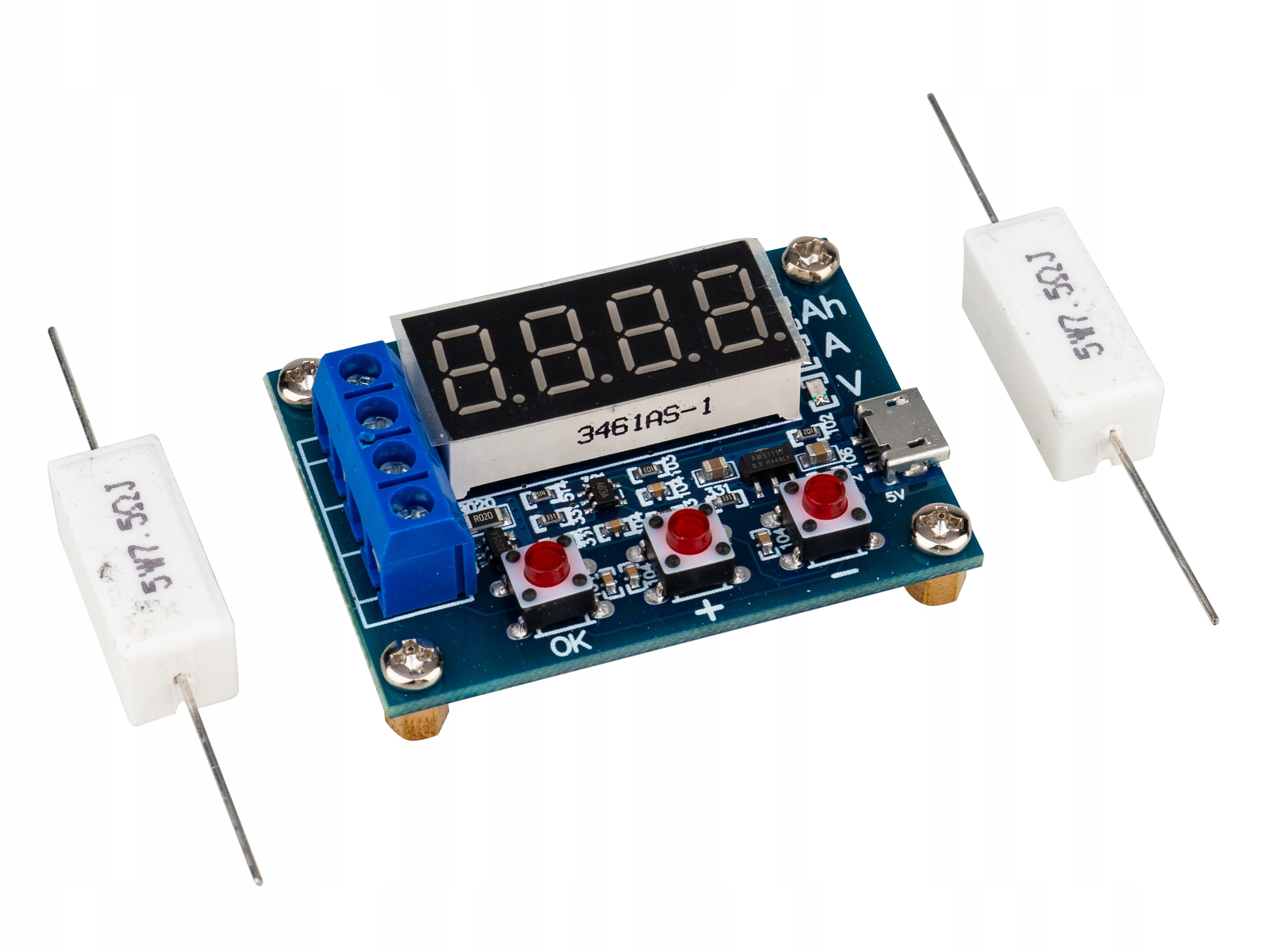 Під час вимірювання батареї з великою ємністю вам слід замінити навантажувальний резистор на інший приймач, який форсує струм навантаження на макс. . приблизно 2А. Це пов'язано з тим, що в результаті протікання струму через навантаження виділяється велика кількість тепла. Це може спалити резистор або пошкодити лічильник.