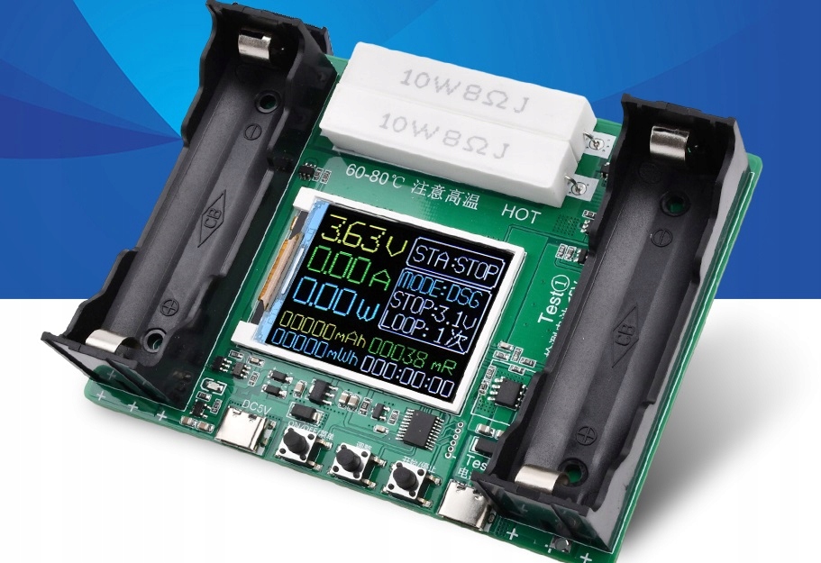Тестер вимірює внутрішній опір і вимірює ємність 18650 елементів.