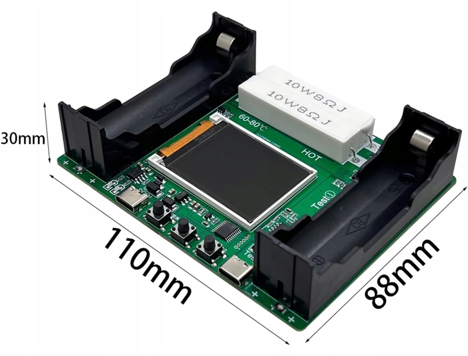 РК-тестер для визначення ємності та опору елементів живлення 18650 USB-C
