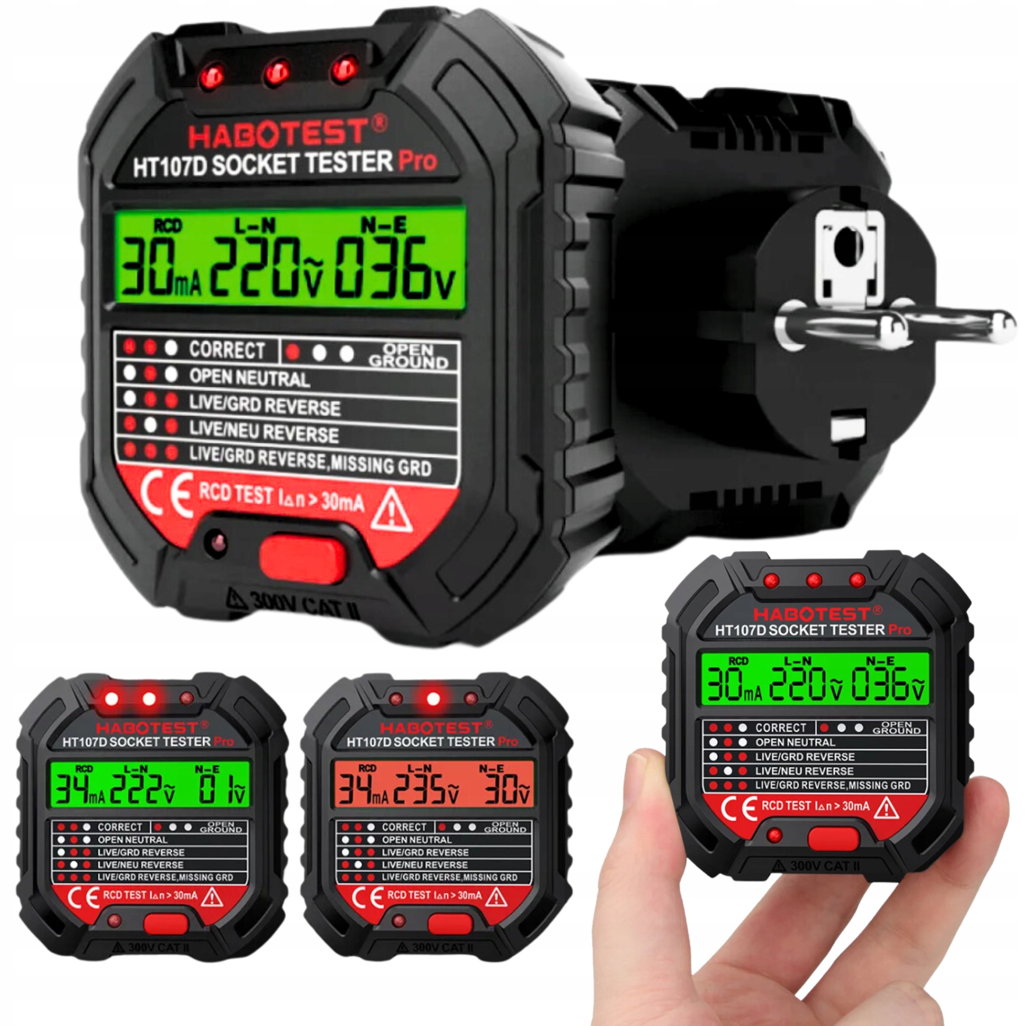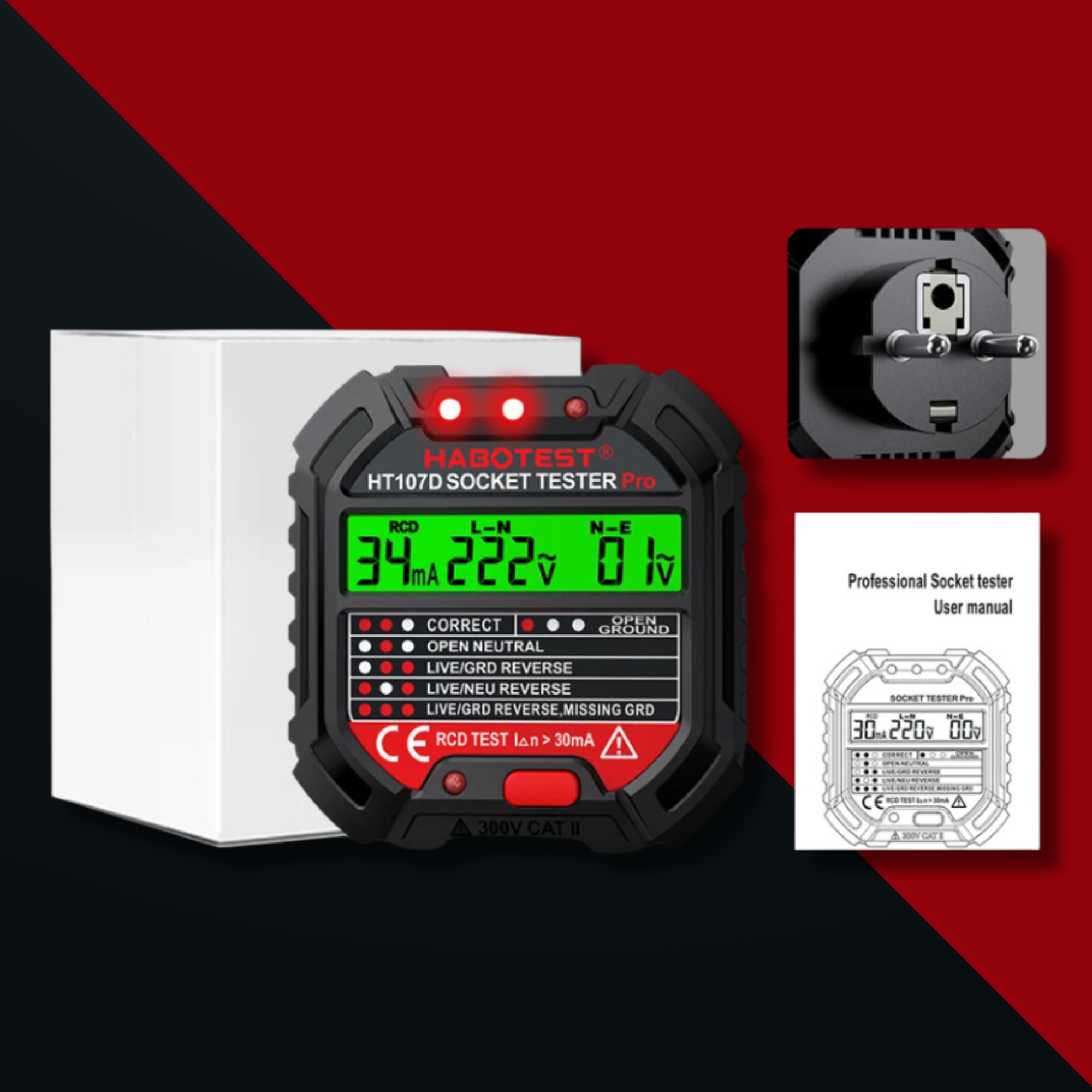 Тестер розеток торгової марки Habotestзабезпечить безпеку у вашому домі. Це невеликий і практичний пристрій, оснащений цифровим дисплеєм і світлодіодними індикаторами, який надасть вам найважливішу інформацію. Якщо тестер виявить будь-яку несправність, світлодіоди засвітяться в певній комбінації.