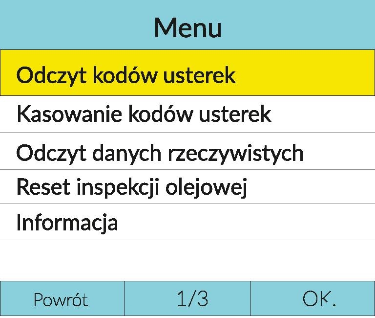 Тестер — це автономний пристрій, оснащений кольоровим дисплеєм, міцним корпусом і швидкий процесор ARM. Він живиться безпосередньо від діагностичного роз’єму автомобіля та має повне ПОЛЬСЬКЕ меню (включаючи повні польські описи кодів несправностей).