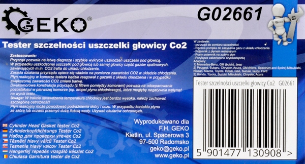 Реакційна рідина в камері тестера вступить в реакцію з газами системи охолодження, а в разі підвищеного вмісту СО2 – змінить колір. Двокамерна конструкція пристрою (з фільтром між камерами) дозволяє відокремлювати залишки в першій камері (наприклад, краплі охолоджуючої рідини), які можуть негативно вплинути на результат тесту.