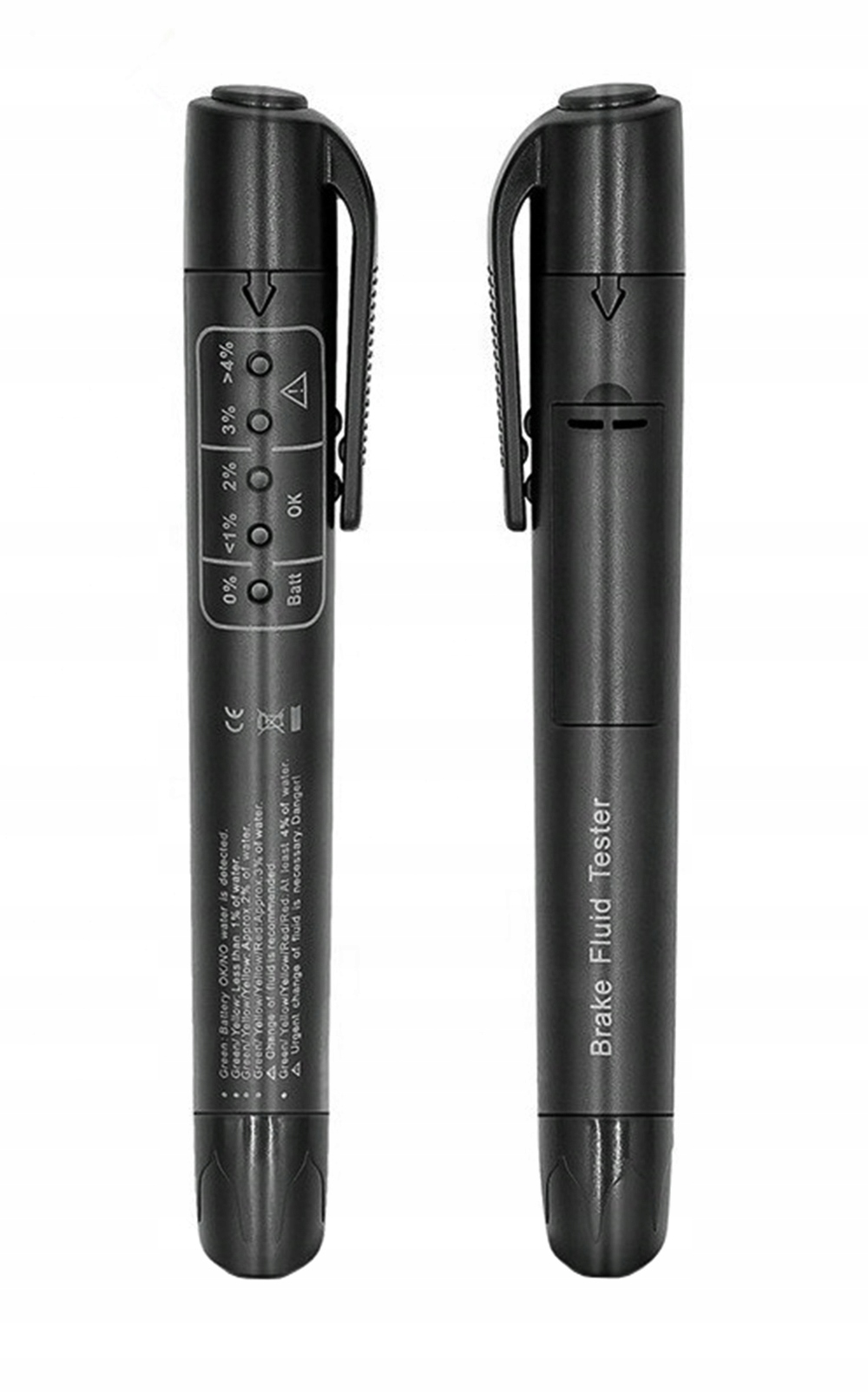 Компактний тестер гальмівної рідини. Він дозволяє миттєво виміряти вміст води в гальмівній рідині, незалежно від моделі автомобіля. Просто занурте електроди тестера в бачок гальмівної рідини і прочитайте індикацію контрольних діодів. Пристрій здатний тестувати багато типів гальмівних рідин (DOT 3, DOT 4, DOT 5, DOT 5.1).