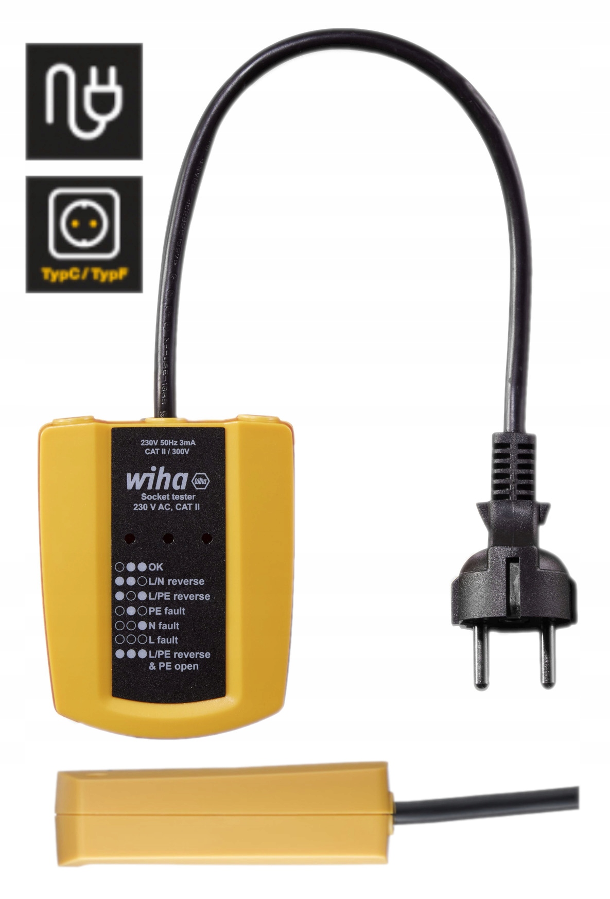 Тестер розетки WIHA 230 В змінного струму, CAT II -> 45220