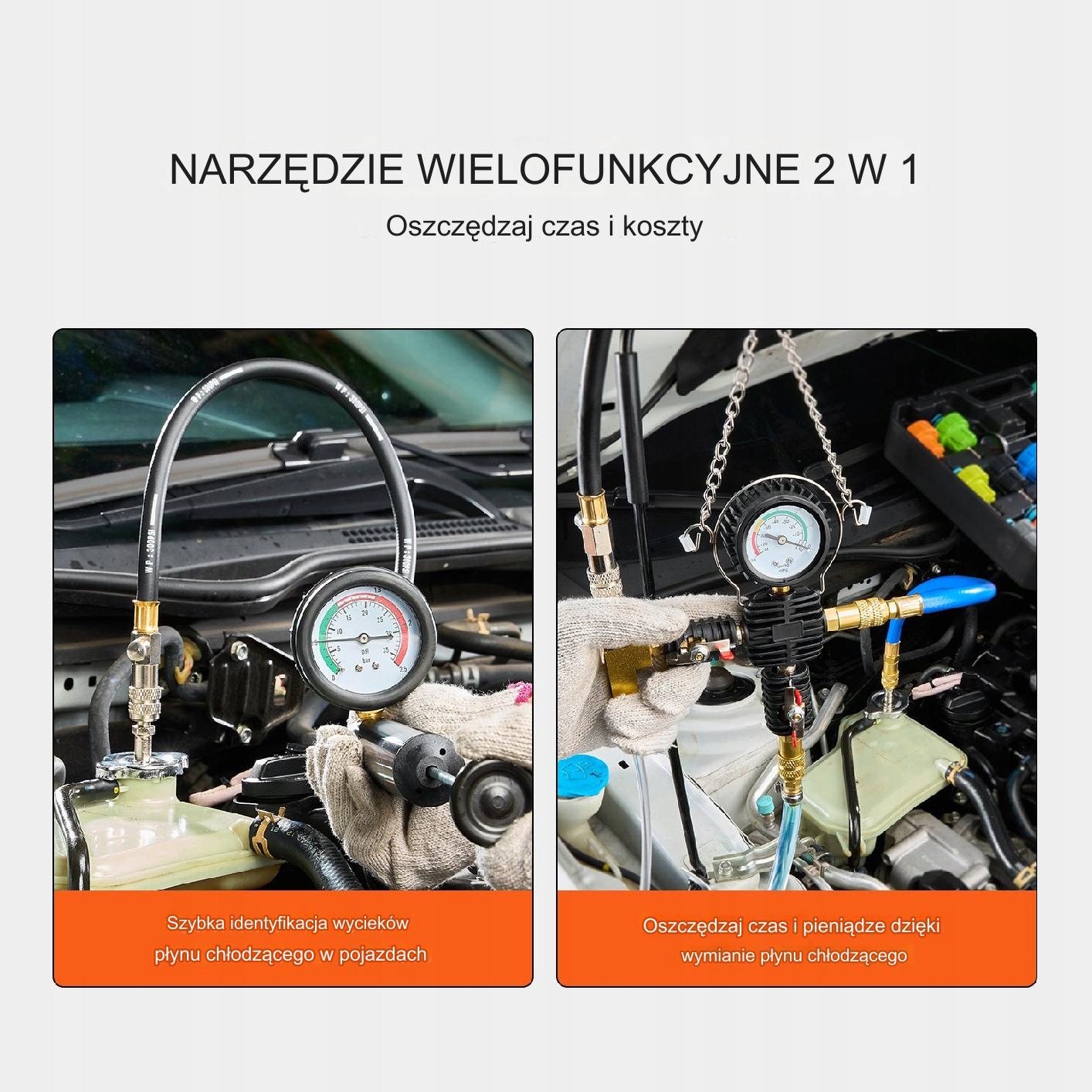 Набір не тільки виявляє витік охолоджуючої рідини, але й сприяє швидкій заміні охолоджуючої рідини. Подвійна функціональність цього інструменту економить час і гроші, що робить його ідеальним вибором для майстерень, ремонтних служб і ентузіастів DIY.
