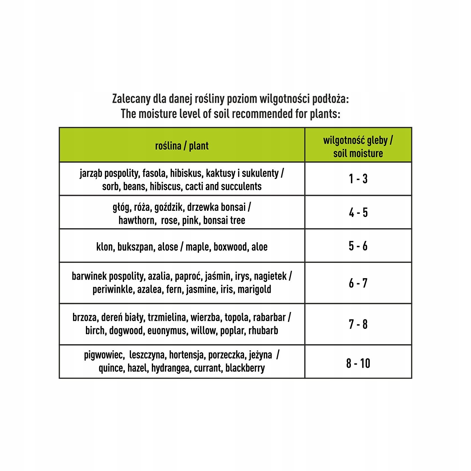- Широкий діапазон вимірювань - Пристрій дозволяє вказати рівень вологості на 10 рівнях, значення рН від 3 до 10 рівнів та сонячного світла за шкалою від 0 до 2000 р.