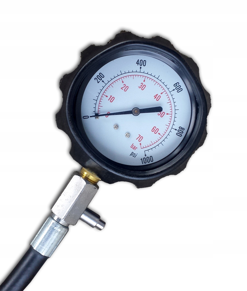 Конструкція: Матеріал сталь C45, чорна поверхня, окислена. Набір включає вимірювач тиску до 70 бар (1000 фунтів на квадратний дюйм) з кабелем, швидким з’єднанням та випускним клапаном, 4 адаптерами, встановленими на місці інжектора, 9 адаптерів, встановлених у цибулині світіння, одного універсального адаптера та типу H.