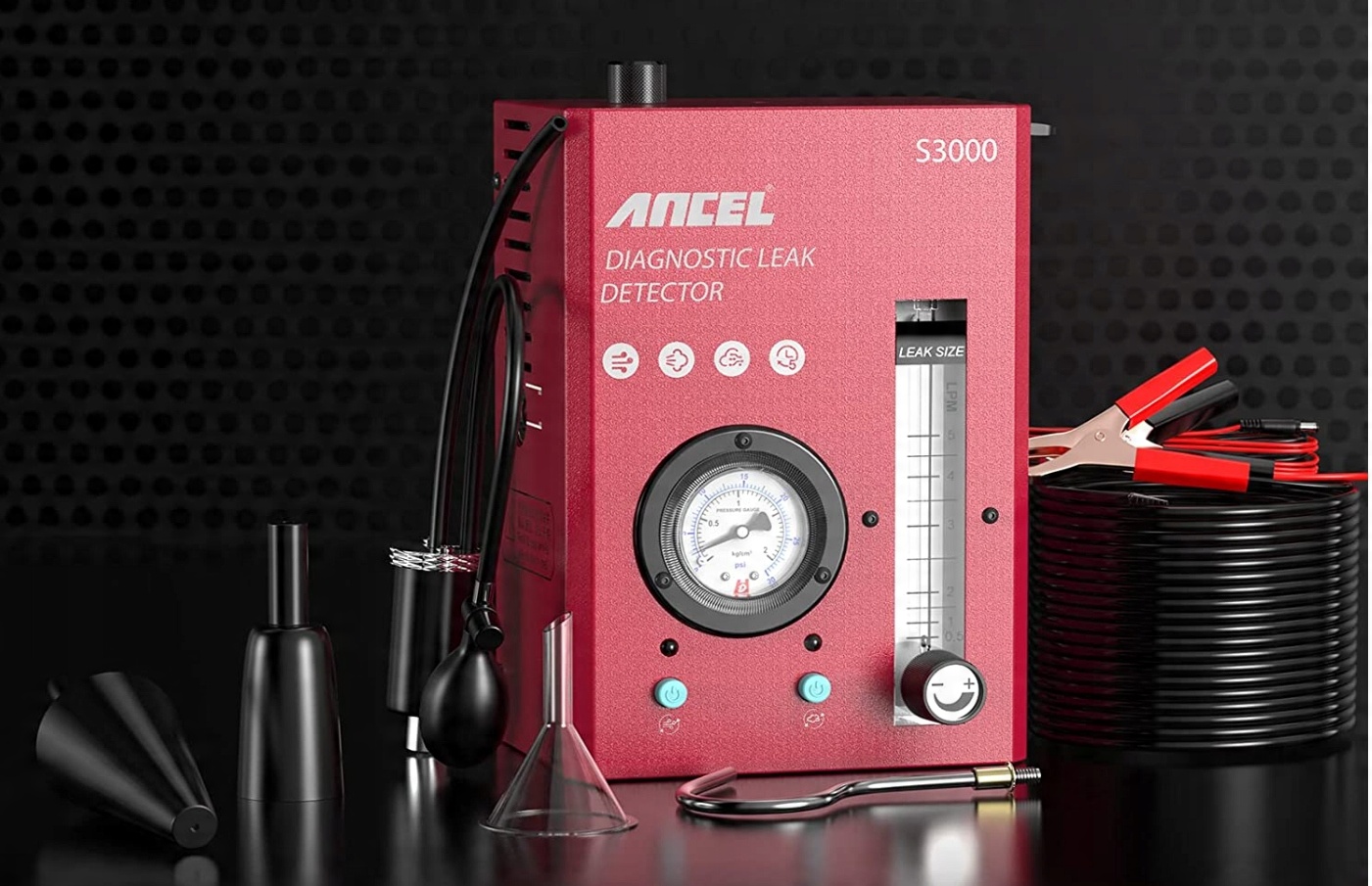 Детектор витоків автомобільного диму ancel S3000 є професійним інструментом для виявлення автоматичних витоків труб. Це допоможе нам швидко та точно визначити витік мотоциклів, автомобілів, на трубчастих системах, таких як тест на впускну систему, випробування на вихлопних системах, випробування колінчастого вала, випробування на ущільнювач автомобілів, випробування на паливну резервуар, випробування турбо -системи тощо.