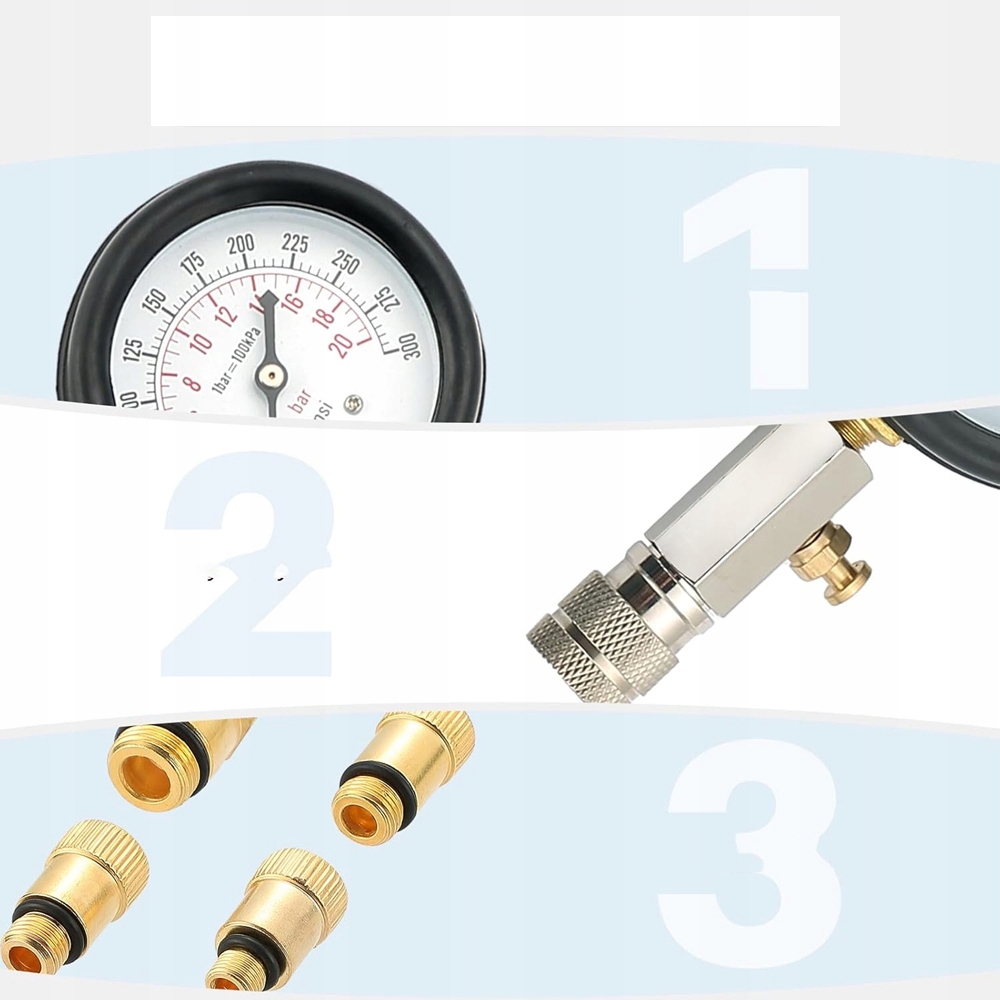 Цей комплект тестера стиснення автомобіля може швидко та обережно перевірити стиснення. Компактний і малий, з чіткими показаннями лічильника, є ідеальним аксесуаром для любителів механіки.