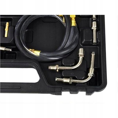 Багатофункціональний набір для вимірювання тиску згоряння бензину. Набір працює з більшістю японських, американських і європейських автомобілів. У комплект входять адаптери та фітинги, які підходять для більшості систем уприскування палива. Манометр з подвійною шкалою: 0 - 140 psi і 0 - 10 бар. Довгий гнучкий шланг із вентиляційним клапаном дозволяє безпечно вимірювати тиск.