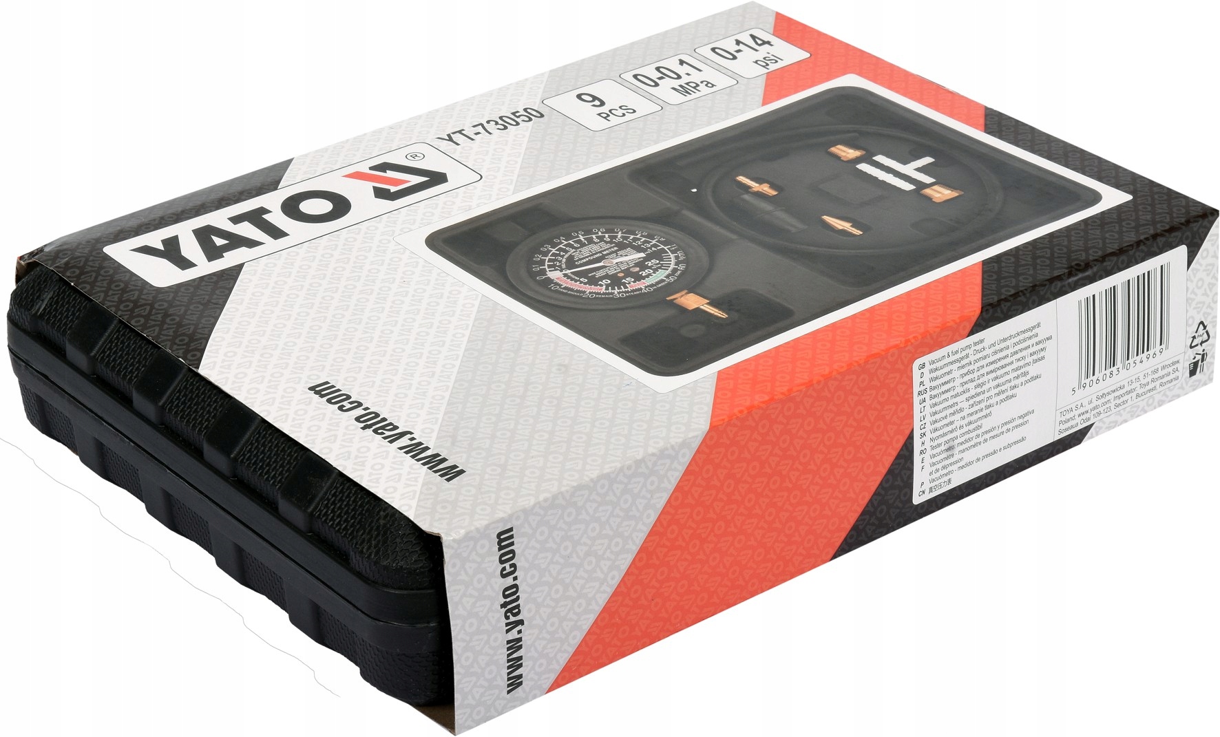 Набір YATO з 9 предметів призначений для вимірювання тиску в вакуумних системах, карбюраторах, впускних колекторах, сервоприводах.