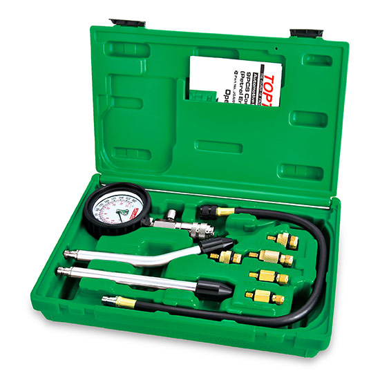 ТЕСТЕР ВИМІРЮВАЧ ТИСКУ СТИСНЕННЯ БЕНЗИН + 5 АДАПТЕРИ 20бар КОМПЛЕКТ TOPTUL