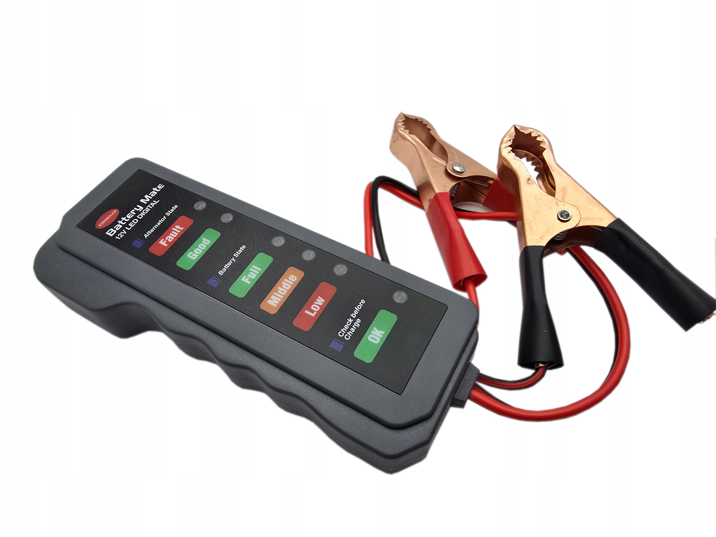 Простий у використанні тестер напруги та стану акумулятора 12 В на основі 6-сегментної світлодіодної панелі. Дозволяє швидко визначити рівень заряду акумулятора та перевірити напругу зарядки генератора - просто підключіть затискачі типу "крокодил" до клем акумулятора. Результат зчитується безпосередньо з кольорових діодів.