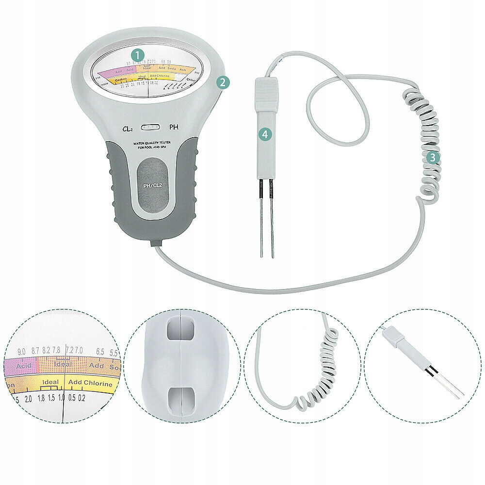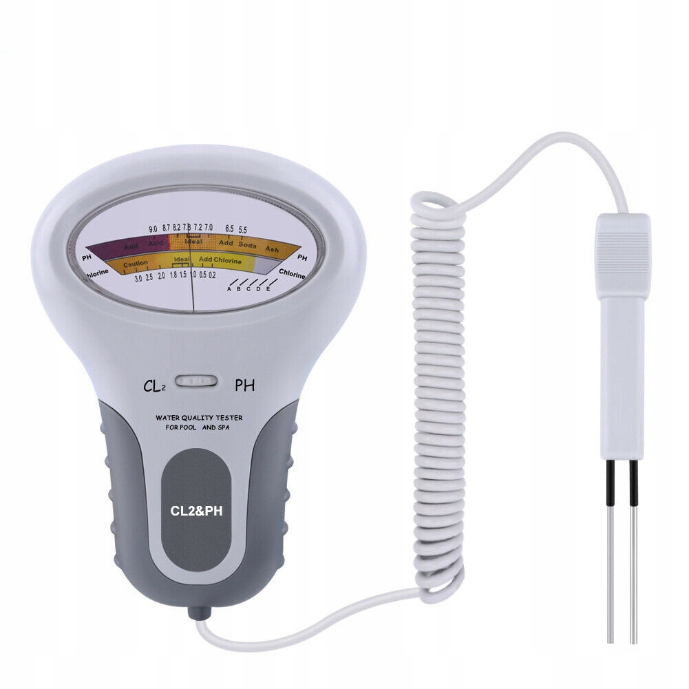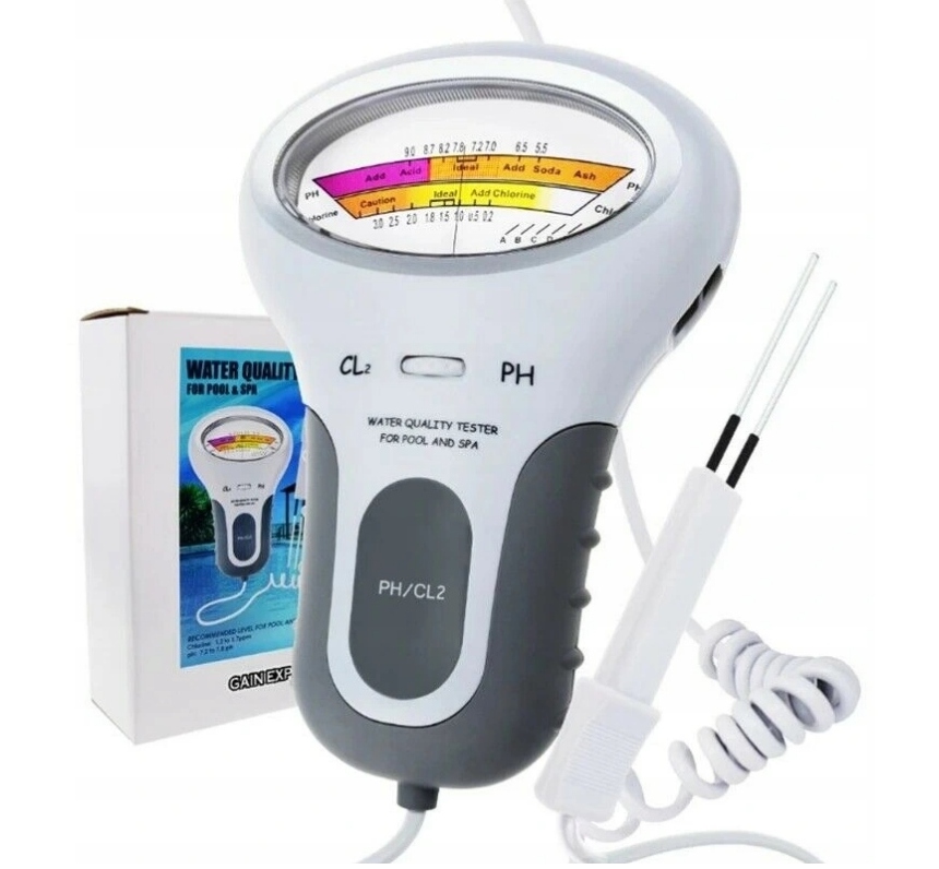 - Електричний тестер для тестування рівня рНі хлору (Cl2) у воді. Для регулярного моніторингу рівня рН і хлору в плавальних басейнах, гідромасажних ваннах і різних джерелах води.