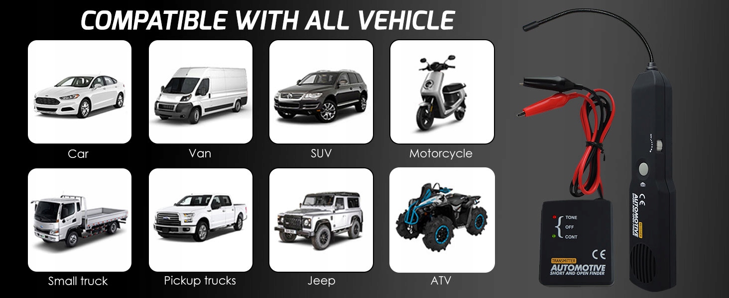 - Відстеження дроту можливе навіть всередині пучків, проводів, за панелями, під килимами, оббивкою тощо