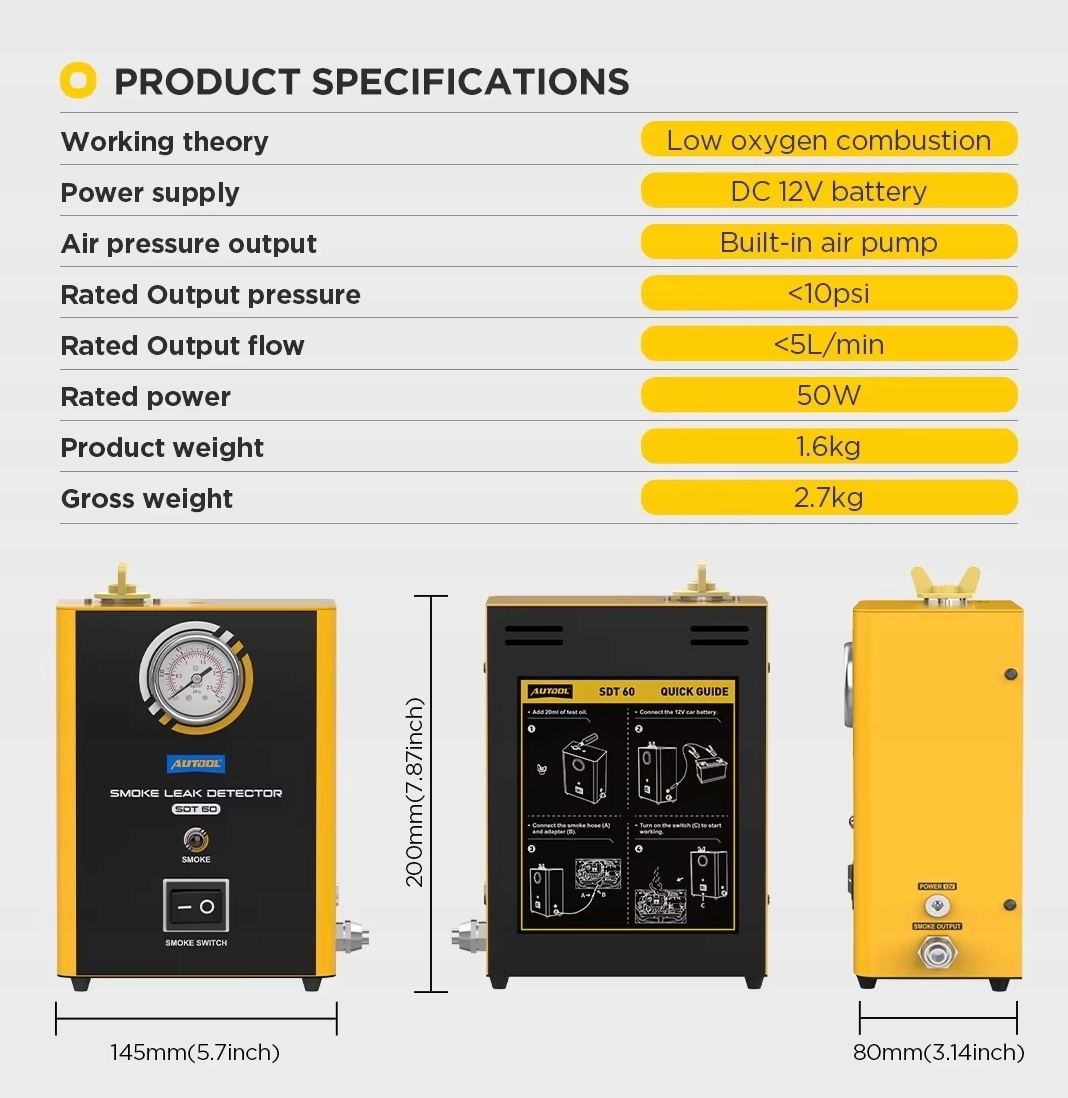 Tester Wykrywacz dymny nie szczelności instalacji układów SDT60 Generator
