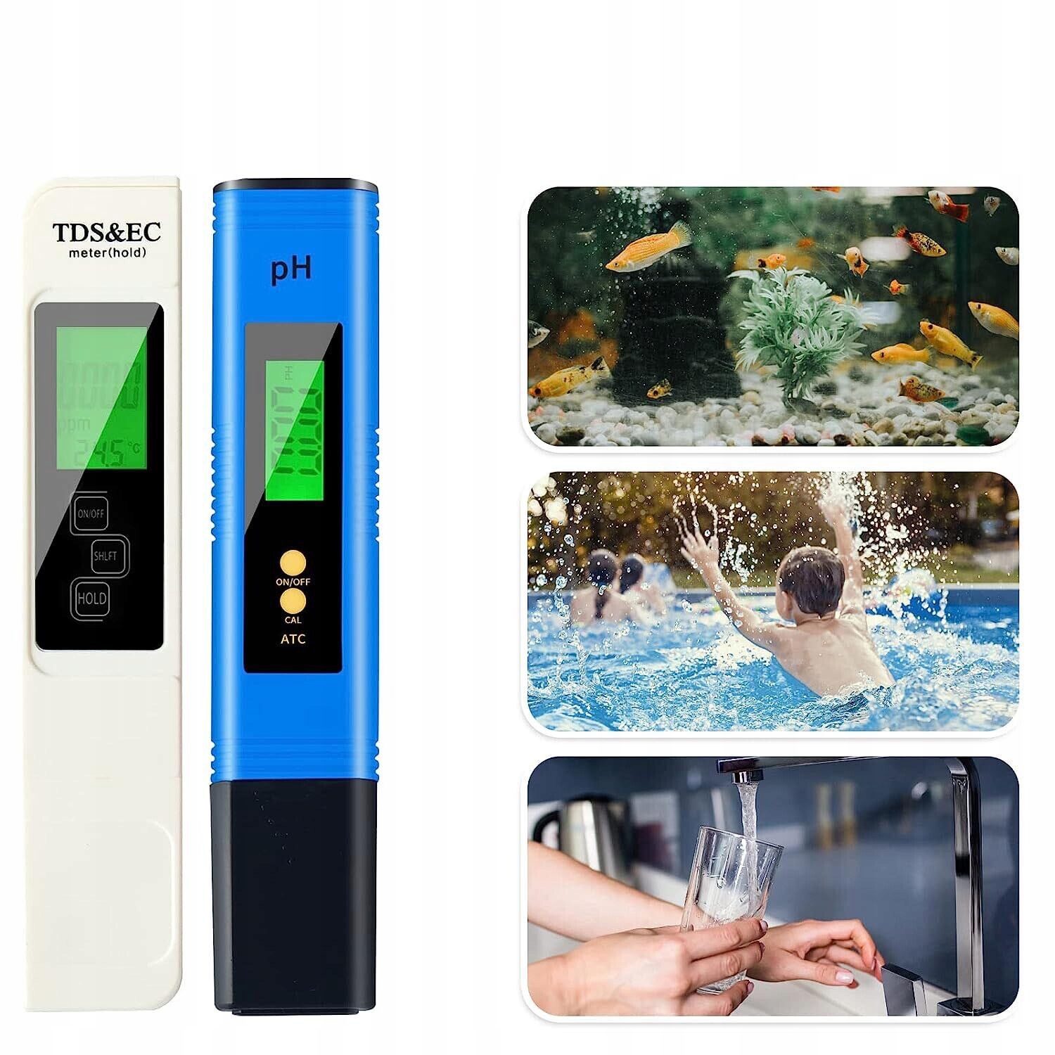 💧💧 [автоматична калібрування] - обидва вимірювальні пристрої можна відкалібрувати однією кнопкою. Просто утримуйте пристрій у відповідному рішенні та натисніть кнопку. Вимірюючий пристрій буде повторно калібрований через кілька секунд