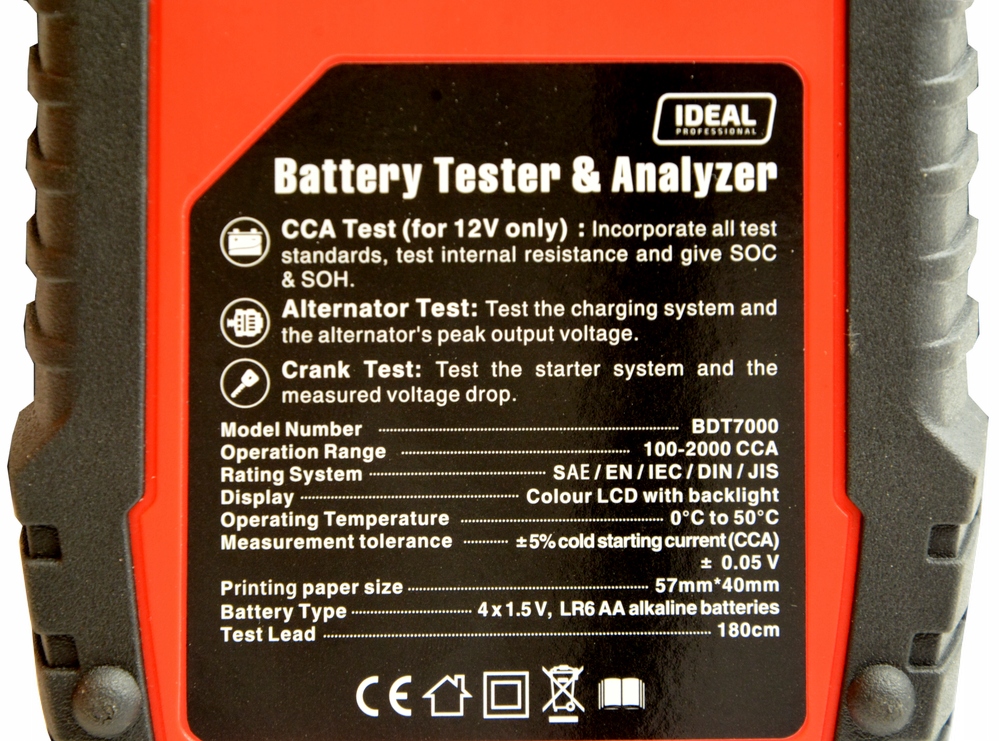 Акумуляторний тестер BDT7000 12/24 В з кольоровим РК-дисплеєм і принтером призначений для WET / VRLA / GEL / EFB / AGM Spiral / AGM плоских акумуляторів. b>