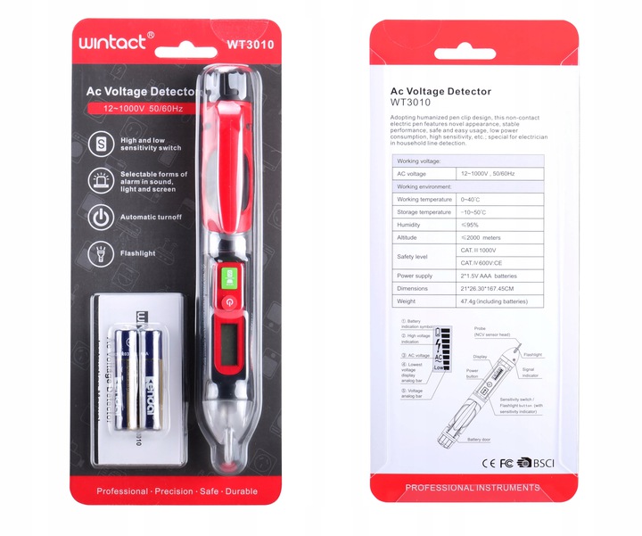 Зручний безконтактний детектор напруги WT3010 характеризується: інноваційною формою, стабільність роботи, безпека, простота використання, низьке енергоспоживання та висока чутливість. Пристрій призначений для електриків, обслуговуючих працівників, обслуговуючих працівників і власників нерухомості для швидкого тестування ланцюгів електроустановок.