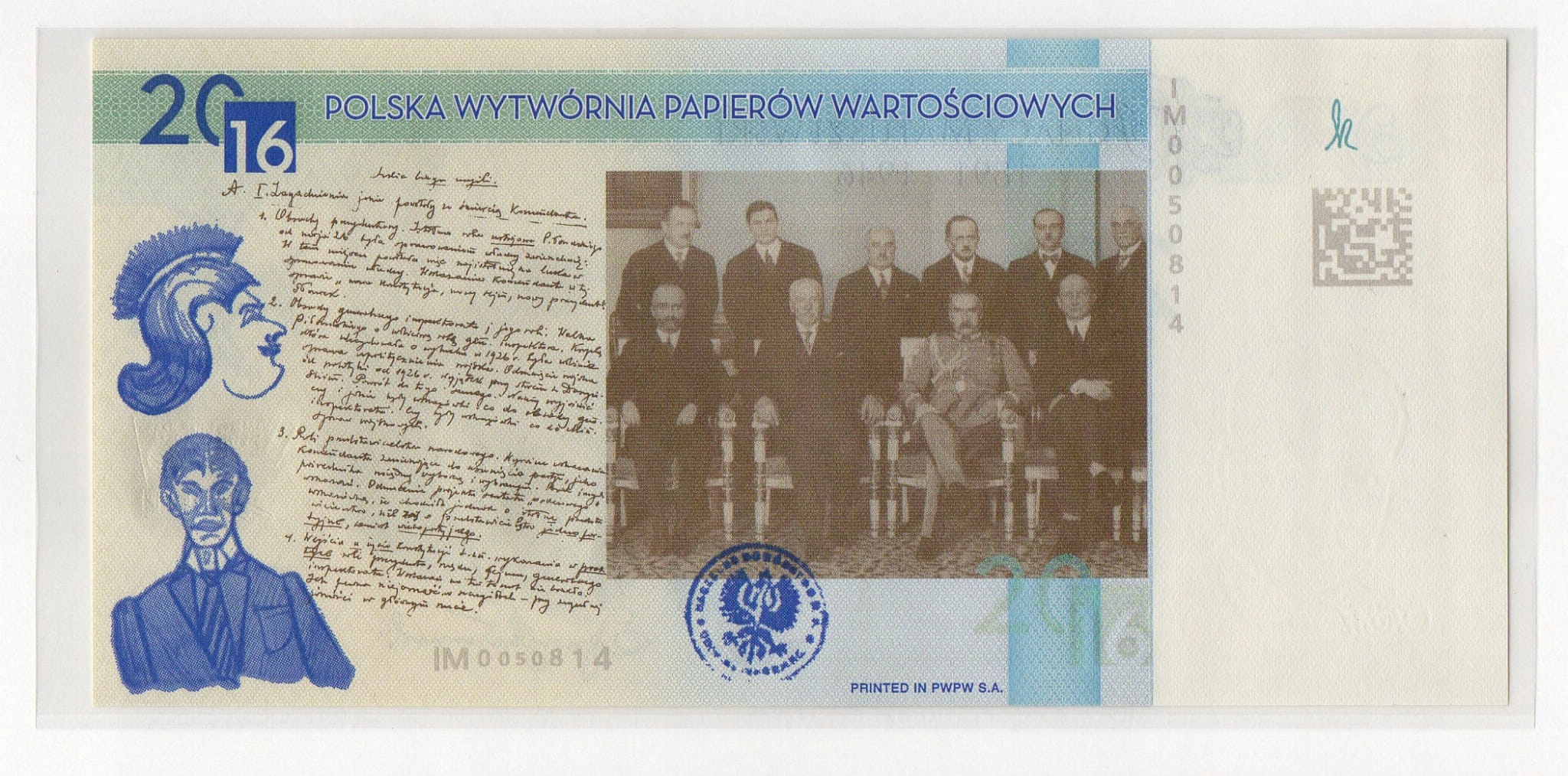 Ми представляємо До вас, PWPW Ignacy Matuszewski тестова банкнота польського виробництва Друкарня цінних паперів. Показує всю безпеку банкноти. Він має водяні знаки, голограми та інші тестові засоби безпеки.
